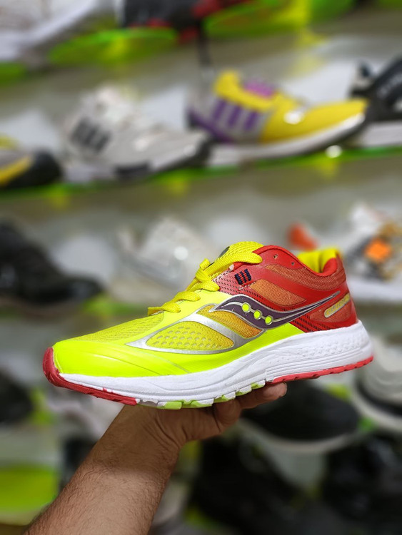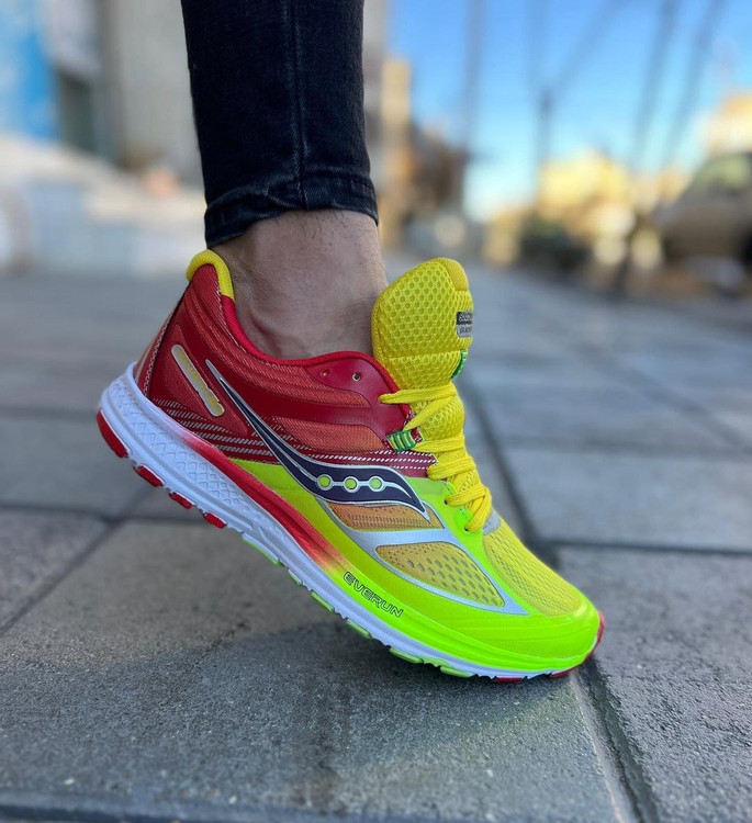 کفش اسپرت مدل ساکونی رنگ زردقرمز با کیفیت بالا و تضمینی و ظاهر فوق العاده کد 2116 + ارسال رایگان