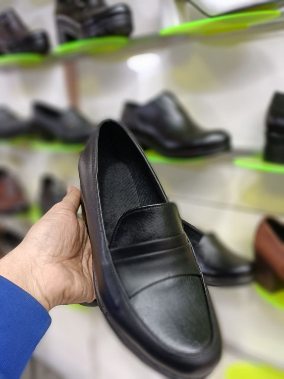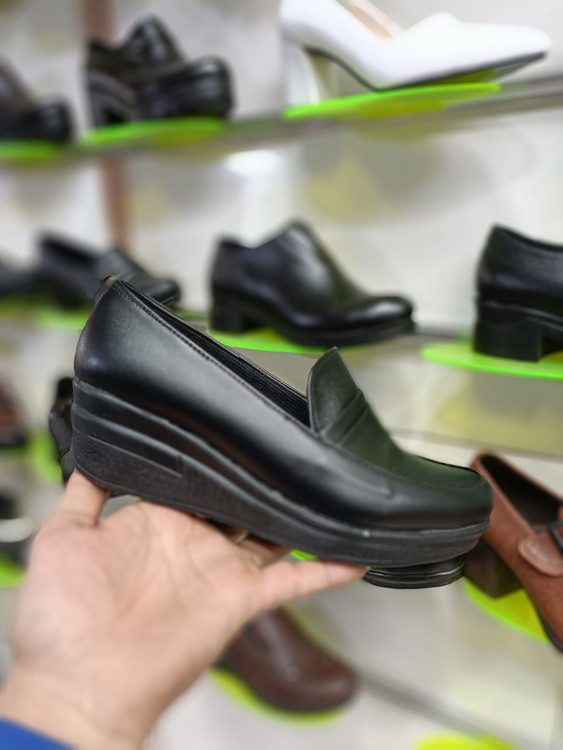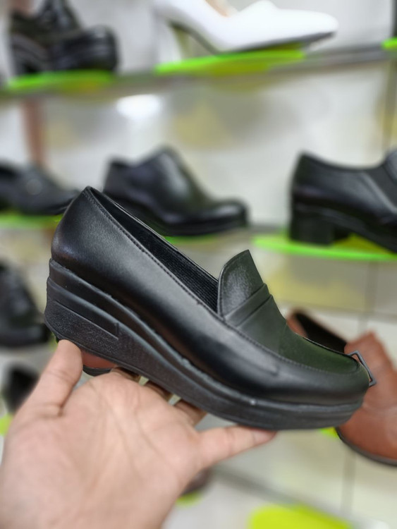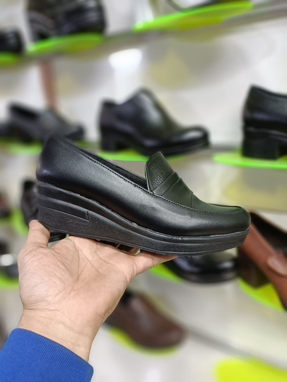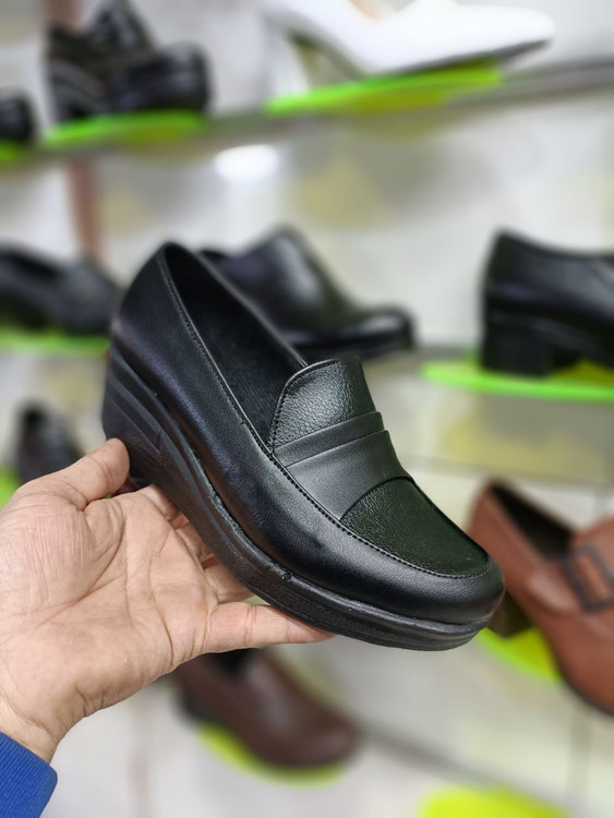 کفش زنانه لژدار طبی پیو PU چرم چرمی راحتی اداری رسمی مشکی کد 2123 + ارسال رایگان