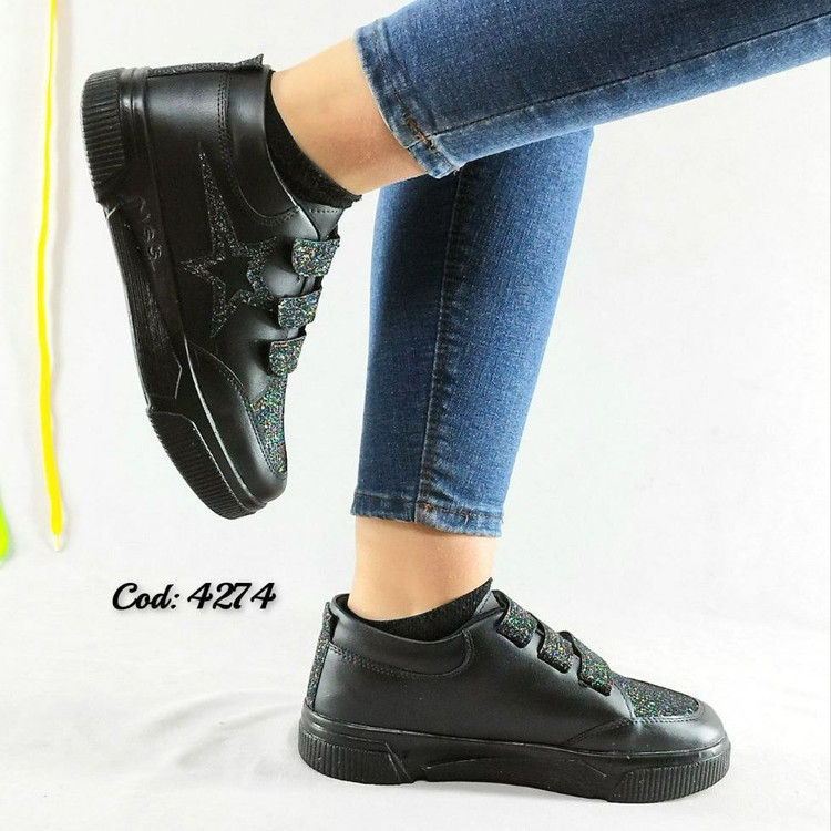 فروش فوق العاده ونس چسبی ستاره ای دخترانه و زنانه رنگ مشکی کد2105 + ارسال رایگان