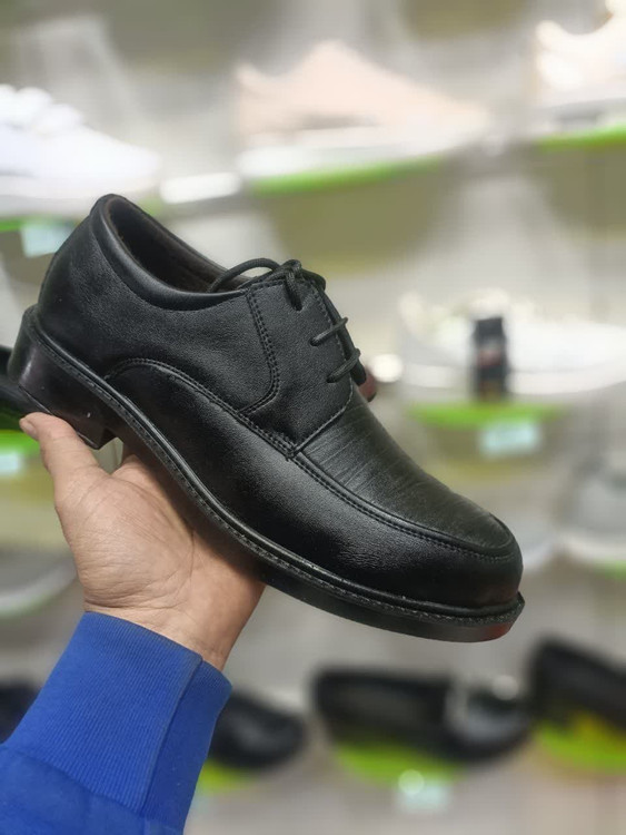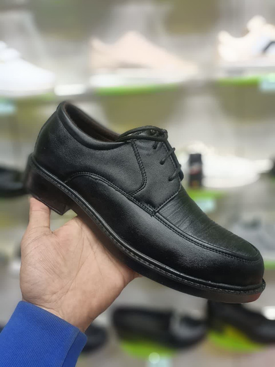 کفش بنددار تمام مشکی چرم صنعتی مردانه کد 218 + ارسال رایگان