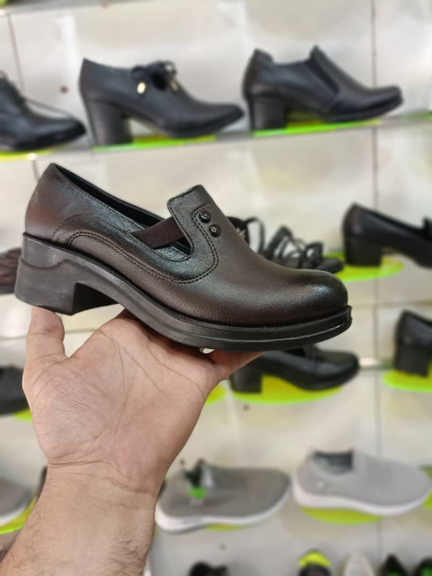 کفش زنانه طبی اداری پاشنه دار قهوه ای تیره زیره پی یو کد 1940+ ارسال رایگان