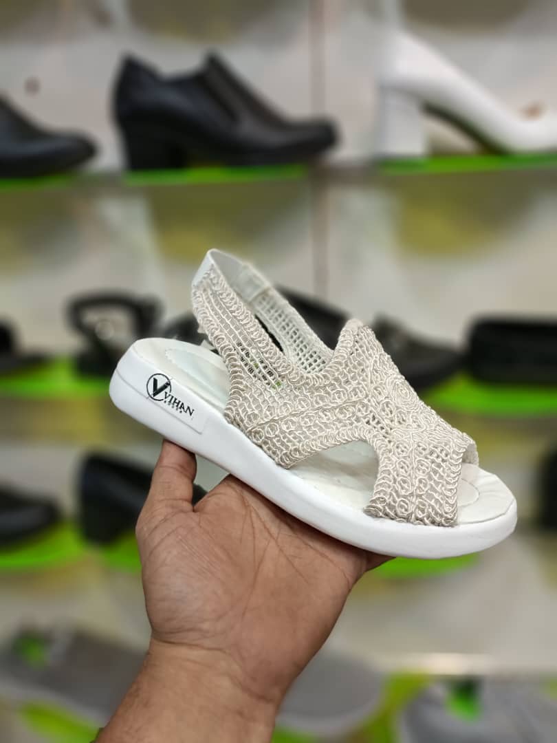 صندل بافت زنانه سفید مدل راحتی تابستانه | سبک، نرم، خنک و مناسب پیادهروی روزمره با کیفیت بالا و قیمت اقتصادی + ارسال رایگان
