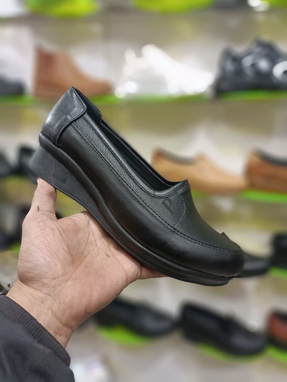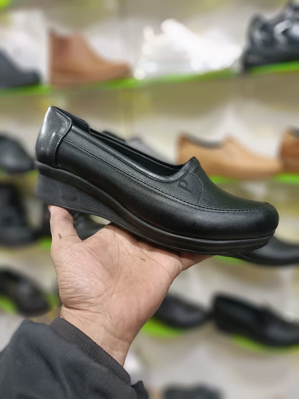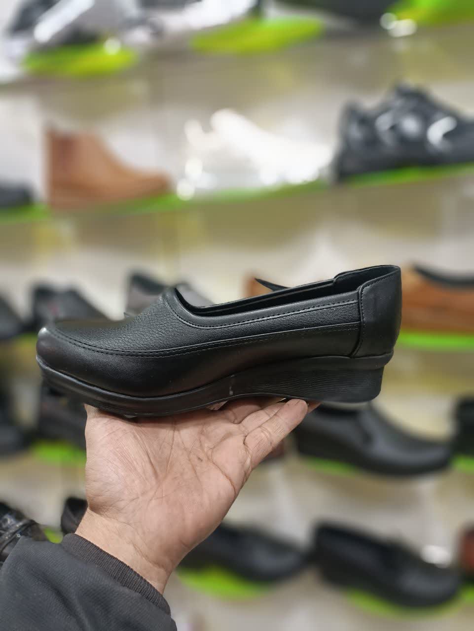 کفش طبی زنانه چرم صنعتی زیره پی یو مناسب کمردرو و زانو درد رنگ مشکی کد6060 + ارسال رایگان