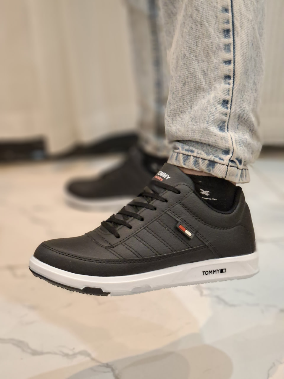 کفش کتونی مردانه بزرگ پا (41 الی 47 ) مدل تامی(tommy) رنگ مشکی بسیار با کیفیت بی نظیر و خوش پا دارای بهترین جنس رویه سوییت + ارسال رایگان