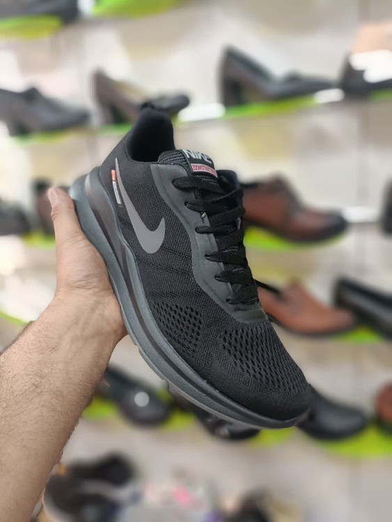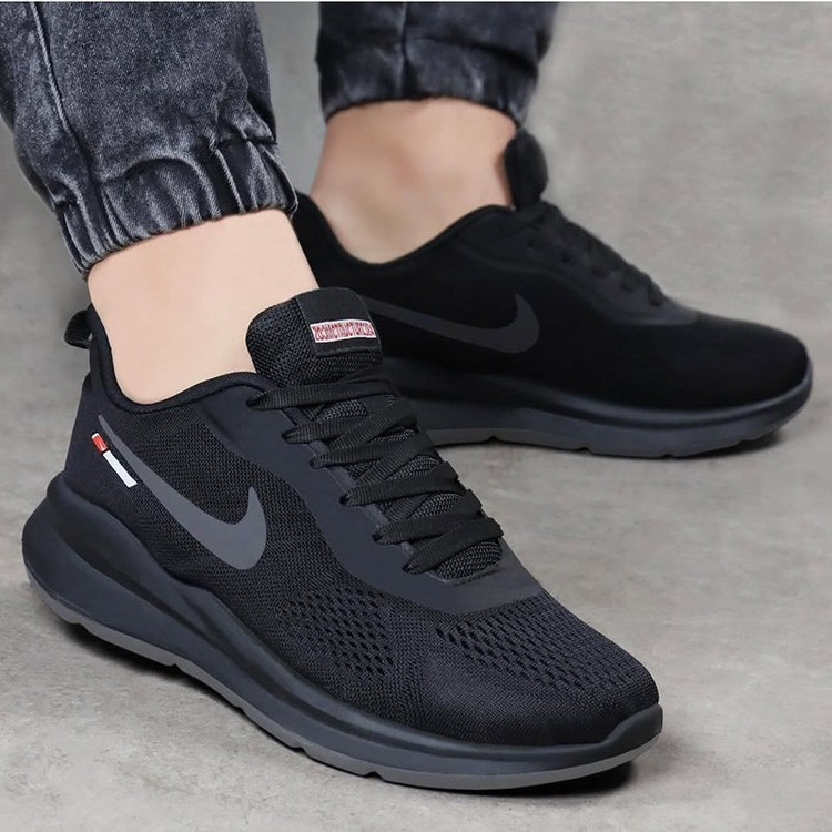 کتونی اسپرت مردانه تزریق مدل نایک(nike)|سایز44 |رانینگ |طبی| تمام مشکی کد 2012 + ارسال رایگان