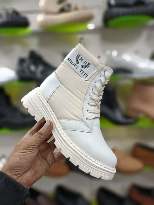 نیم بوت زنانه کاپشنی سفید کرمی زیره دور دوخت کد 2075 + ارسال رایگان