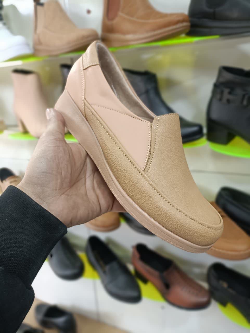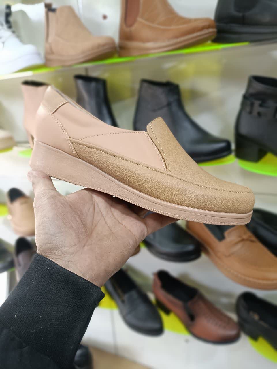 کفش طبی زنانه کرم قهوه ای + کیفیت تضمینی کد 2092 + ارسال رایگان