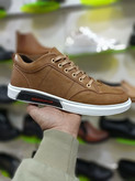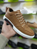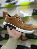 کفش مردانه اسپرت بندی قهوهای عسلی | رویه چرم صنعتی و زیره PU وارداتی، دوردوخت و مقاوم +ارسال رایگان کد 2171