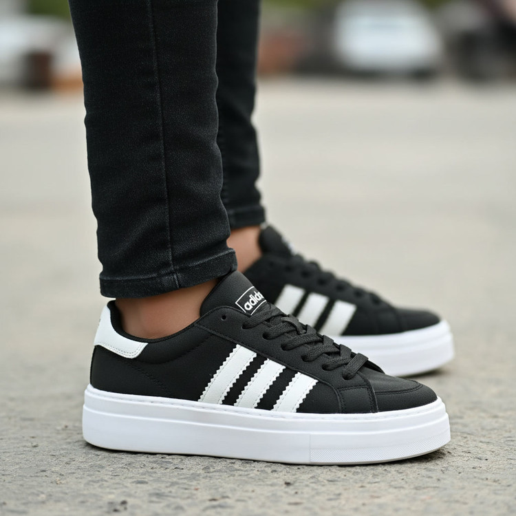 ونس مردانه سه خط مشکی | زیره PU سبک برای استفاده روزمره + ارسال رایگان کد 2199