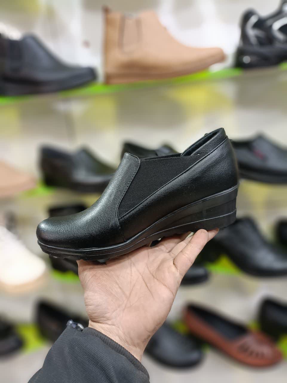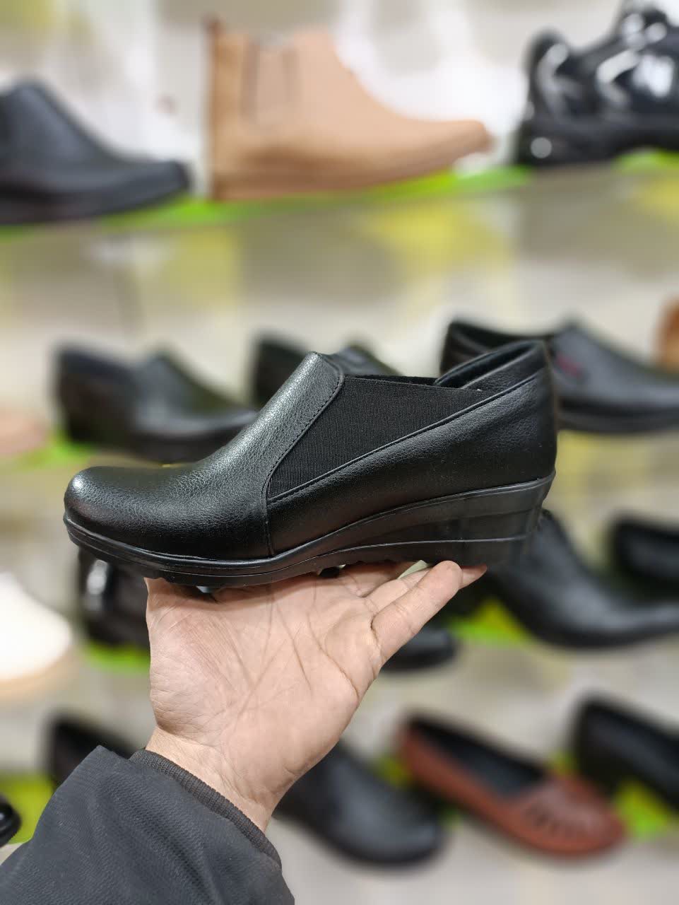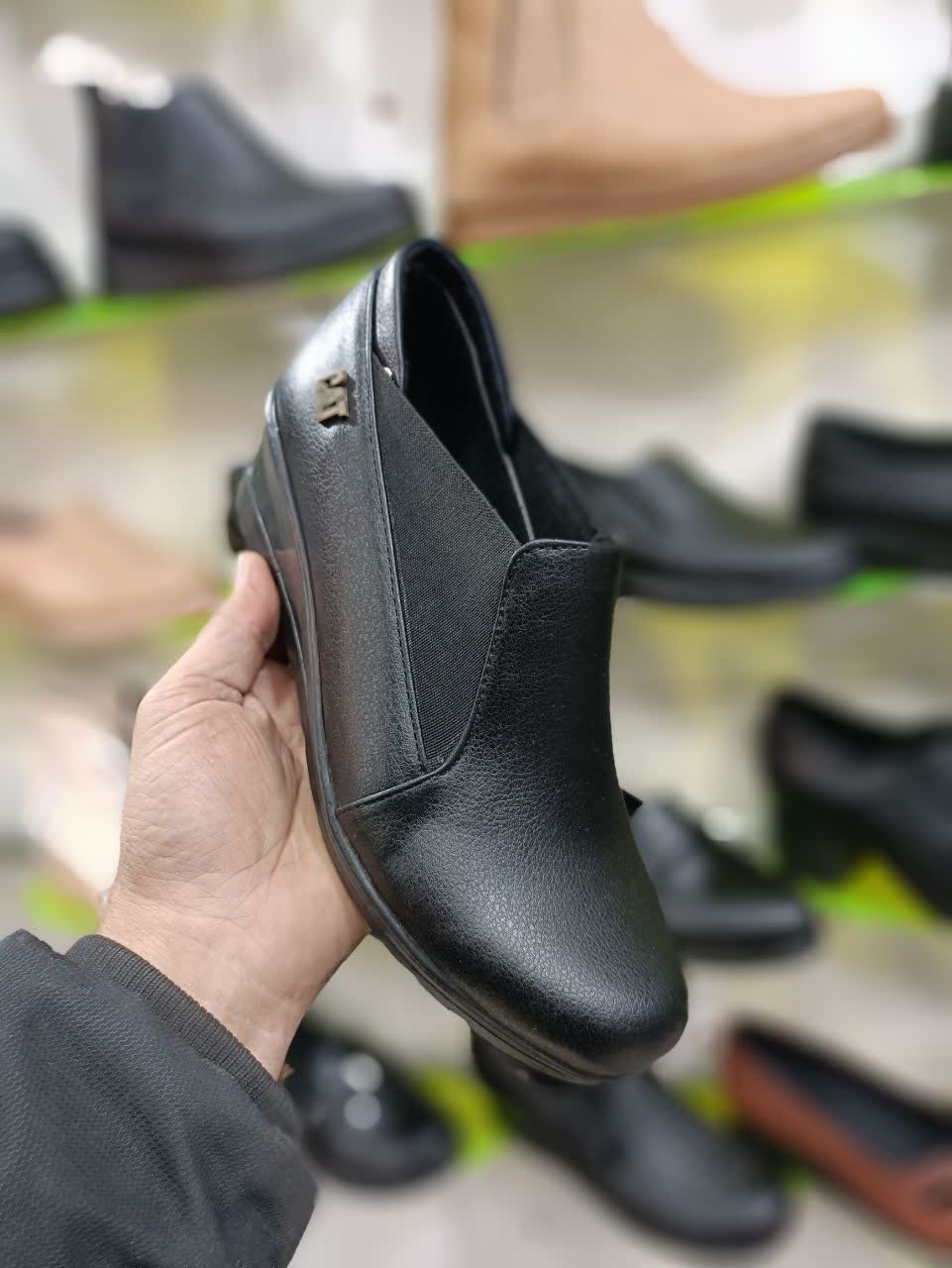 کفش زنانه چرم صنعتی مشکی | زیره نرم پیو و قالب استاندارد + ارسال رایگان کد 2207