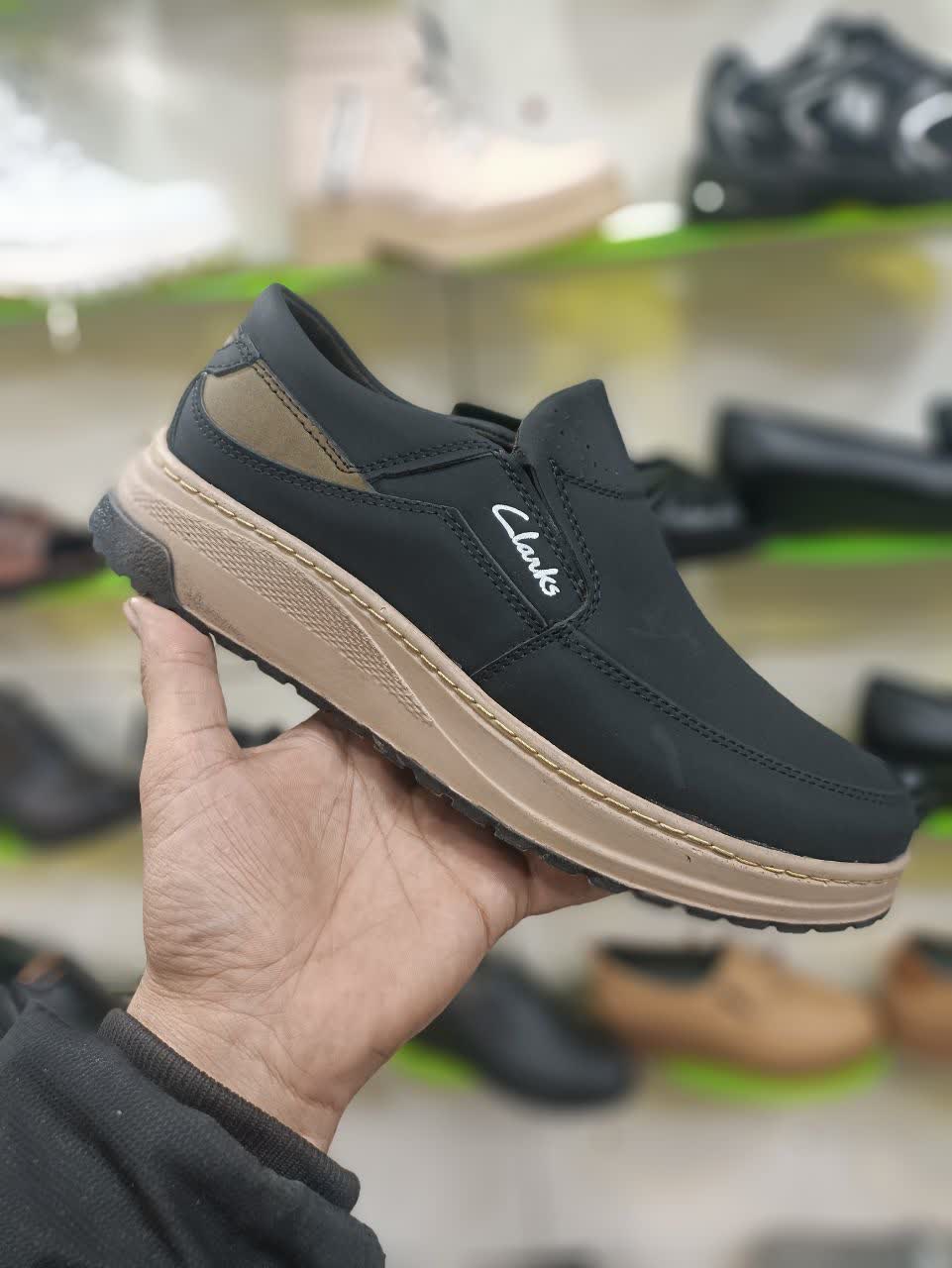 کفش طبی مردانه Clarks رنگ مشکی زیره پیو ، مناسب استفاده روزمره و محیط کار + ارسال رایگان کد2214